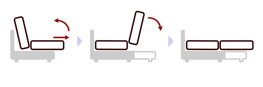 - Диван можно ставить вплотную к стене. При трансформации мягкая часть дивана легко выкатывается, а сама конструкция остается на месте около стены.