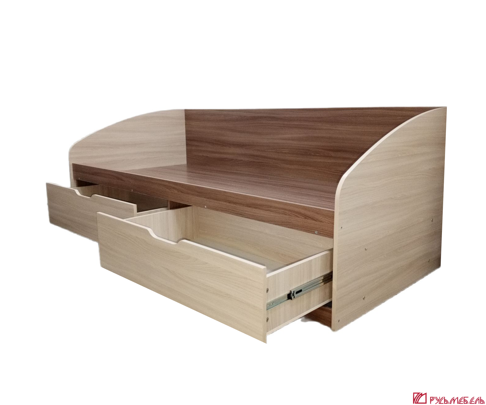 Кровать имеет спальное место 900*2000 мм и дополнена двумя выдвижными ящиками на шариковых направляющих. При выдвижении ящики не касаются пола.