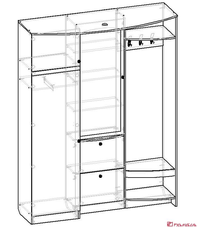 - Открытая вешалка с крючками и полкой для головных уборов